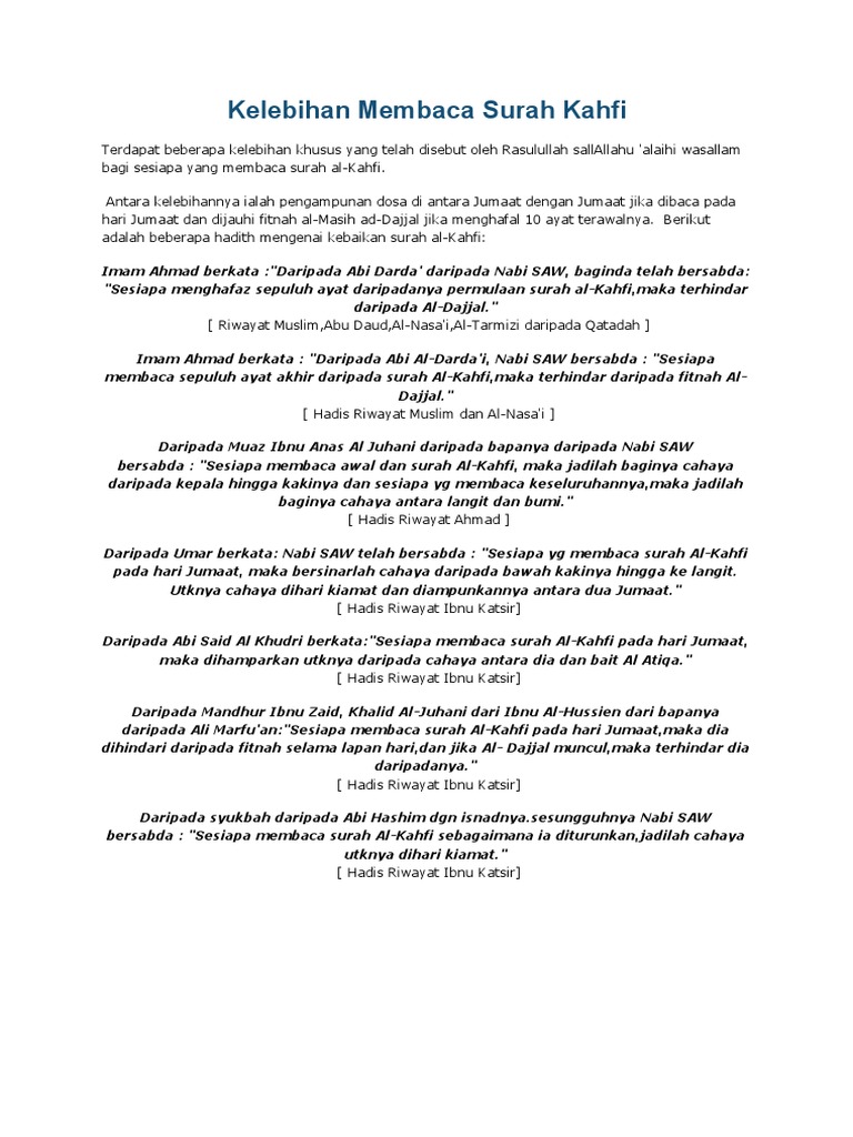 | Baca: Kelebihan Membaca Surah Kahfi Pdf |