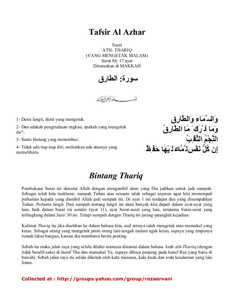| Judul Surah: Tafsir Al Azhar 086 Ath Thariq |
